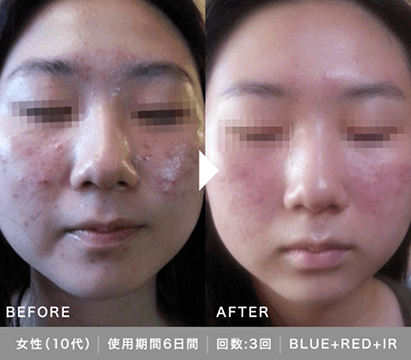 LED照射により、ニキビ改善、しわやたるみの改善、創傷治癒発毛促進などの多にわたる効果が期待できます。